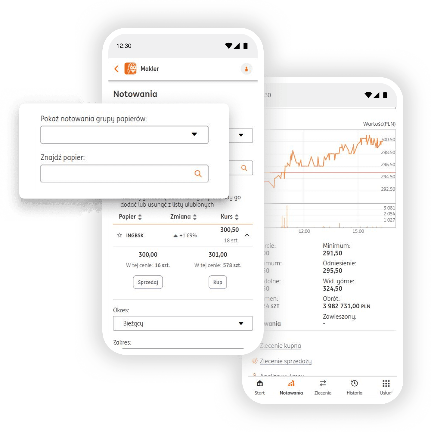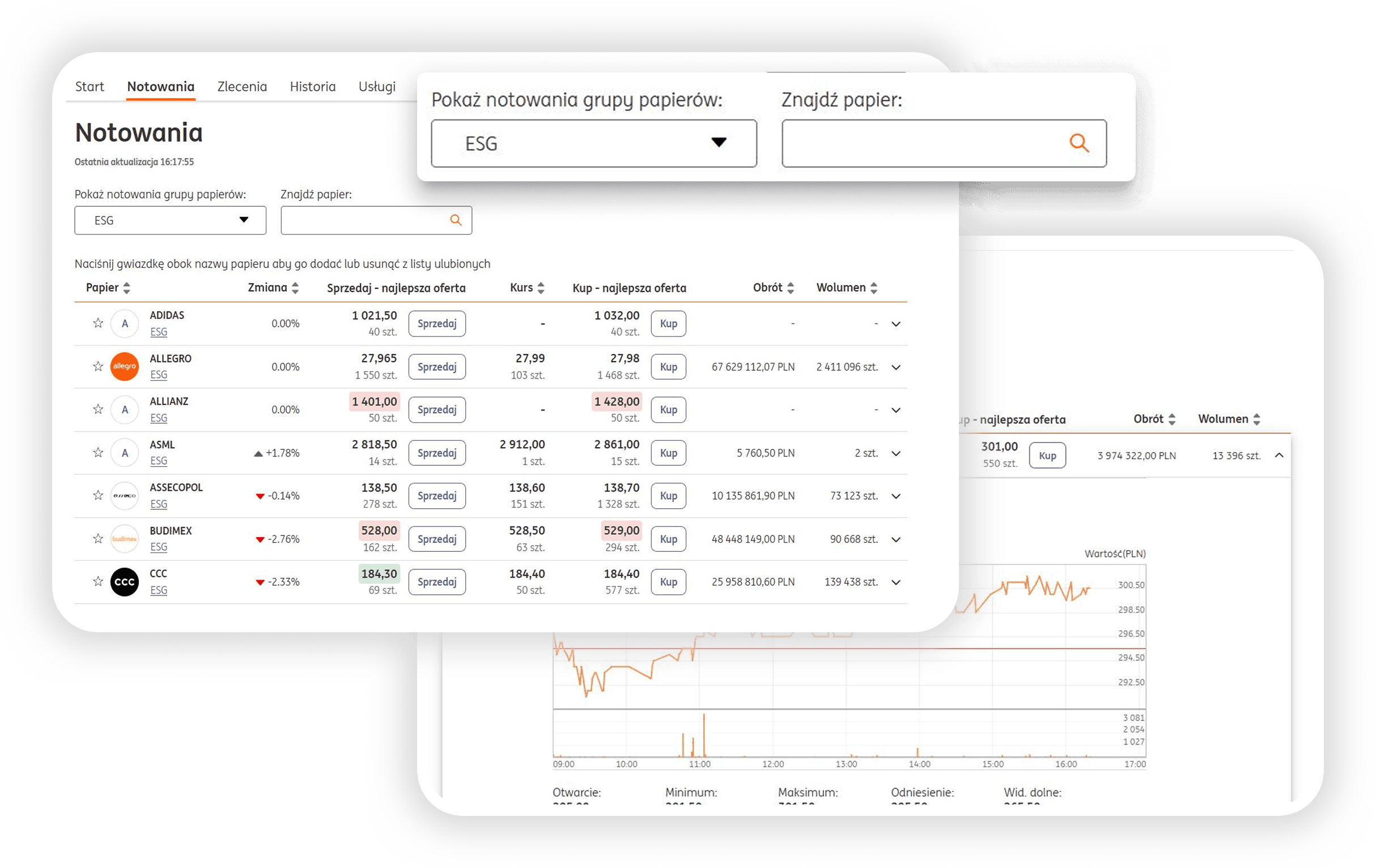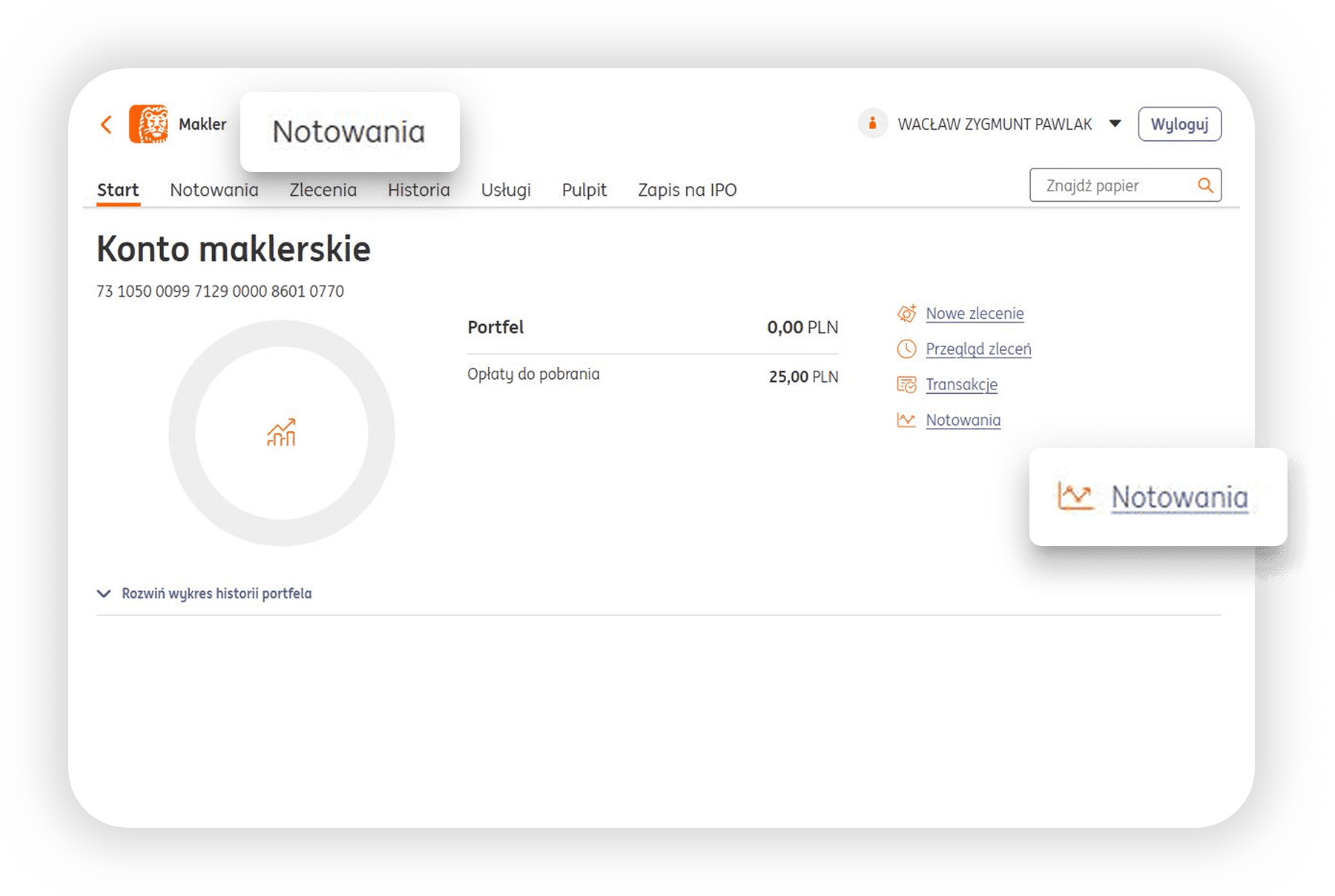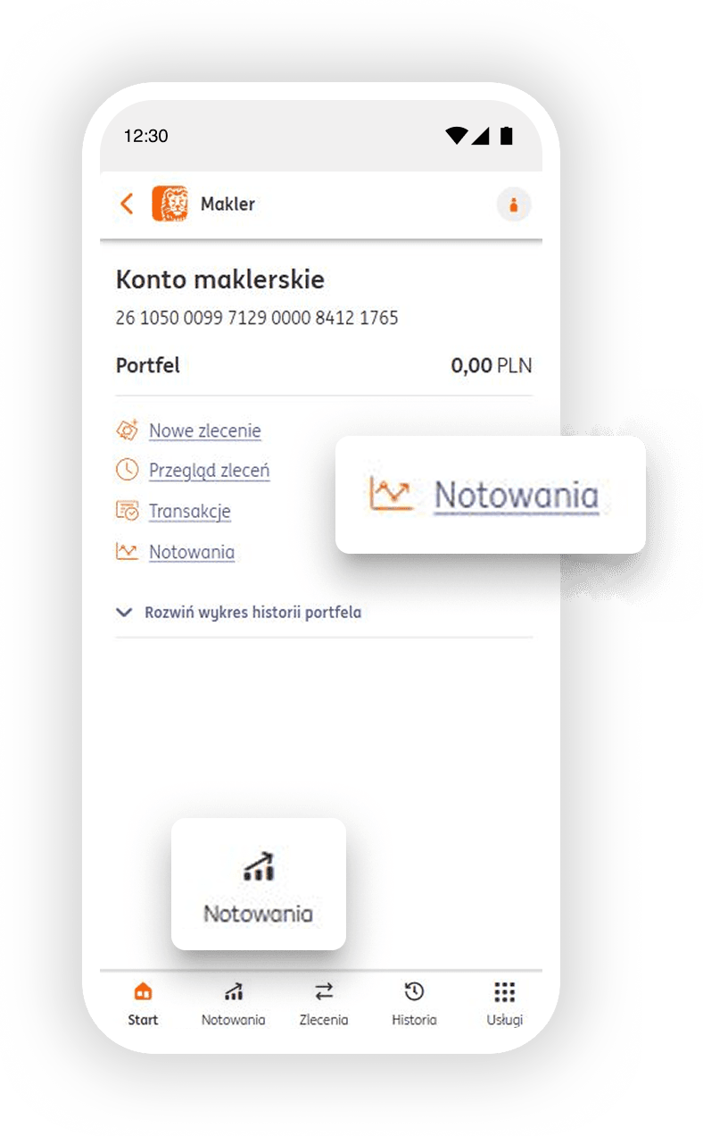 Jeśli chcesz sprawdzić aktualne notowania spółek, przejdź do Maklera i wybierz Notowania. Robisz to pierwszy raz? Zobacz, jak korzystać z Notowań