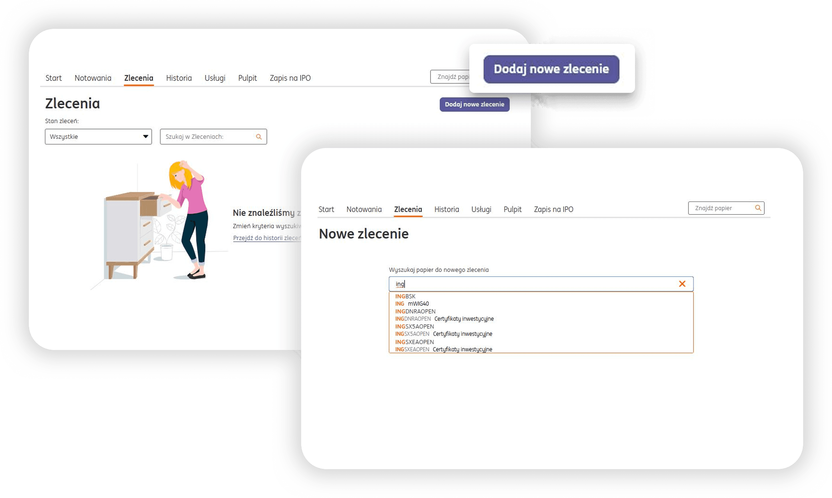 Wybierz instrument, który Cię interesuje i złóż zlecenie. Pamiętaj, żeby później sprawdzić, czy Twoje zlecenie jest zrealizowane. Zobacz, jak sprawdzić Notowania