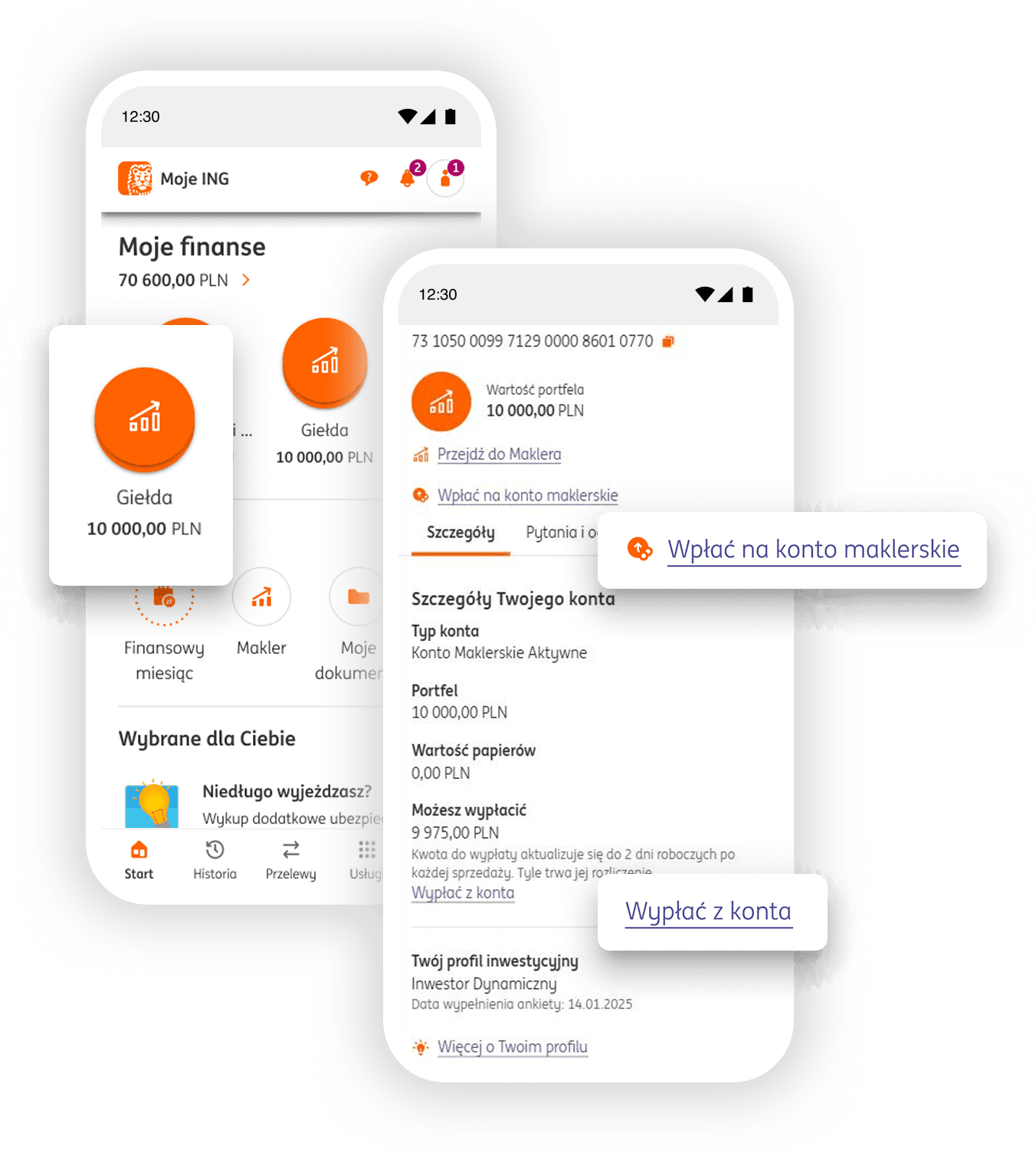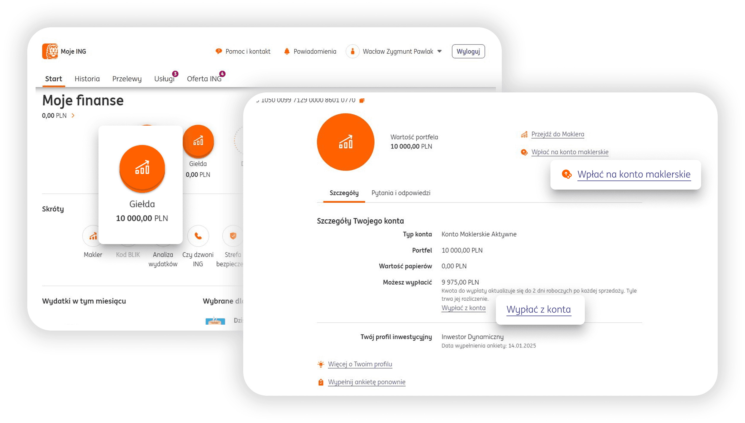 Przelej pieniądze tak samo, jak robisz inne przelewy w Moim ING. Zobacz, jak wpłacić i wypłacić pieniądze z konta maklerskiego
