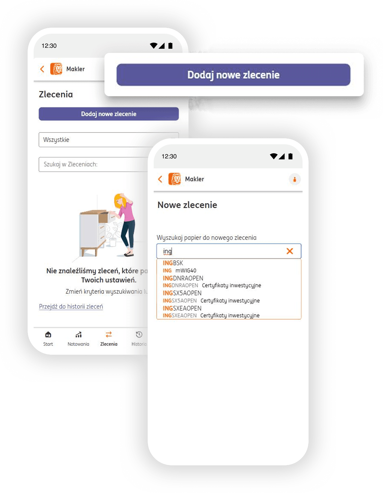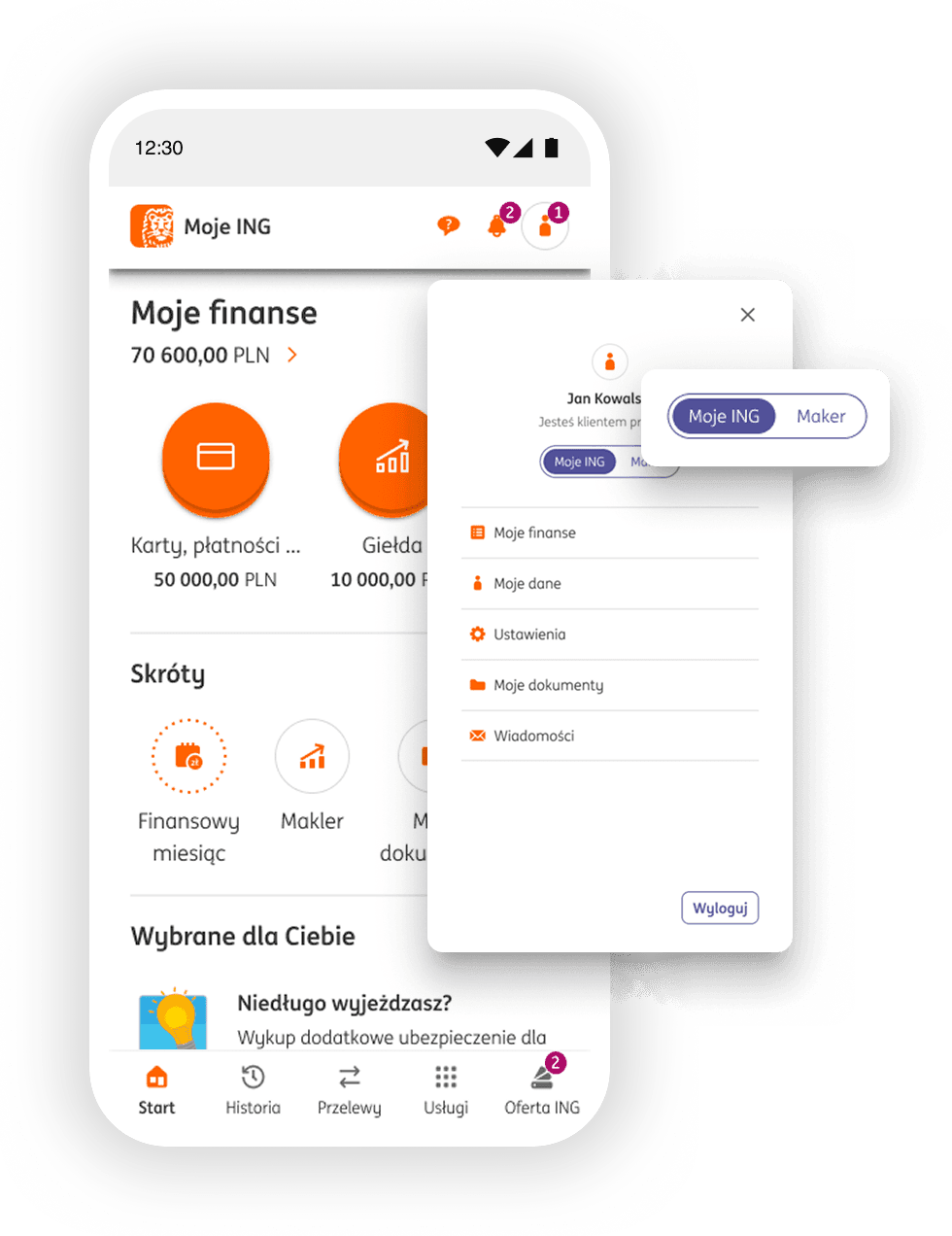 Załóż najpierw konto bankowe, a potem konto maklerskie w aplikacji Moje ING. Pobierz aplikację z zaufanego sklepu i wybierz opcję „Załóż konto bankowe”.