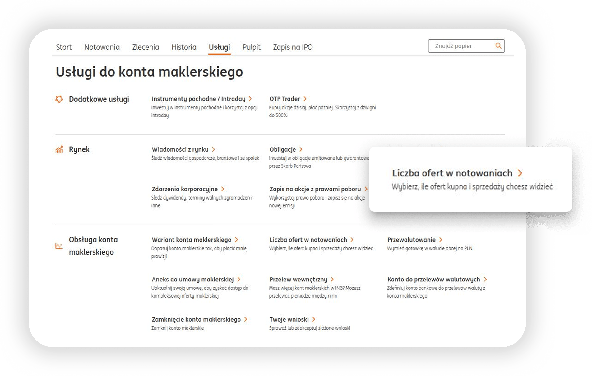 Liczbę ofert w notowaniach ustawisz w Maklerze w zakładce Usługi