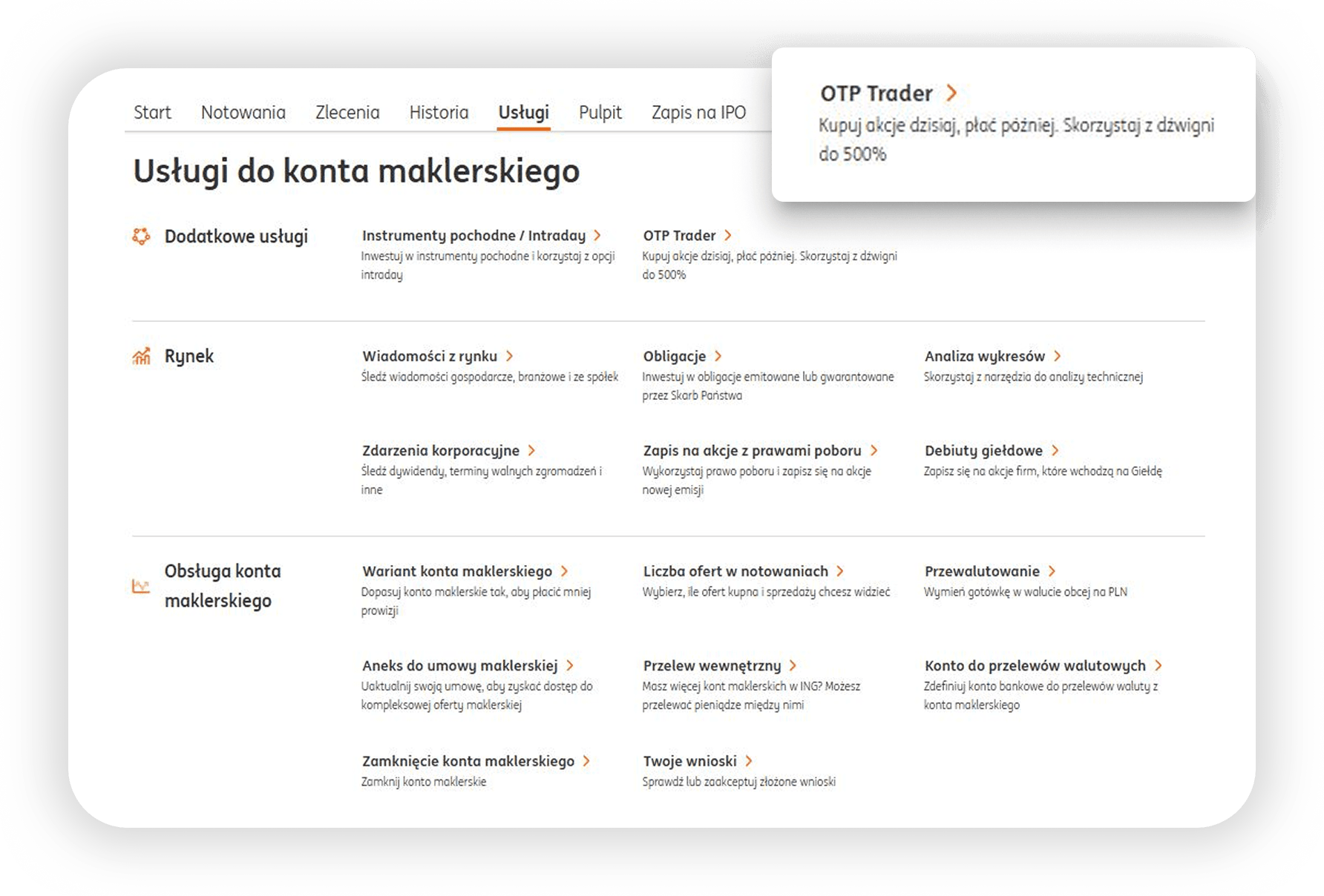 Usługę OTP Trader włączysz w Maklerze w zakładce Usługi – Dodatkowe usługi