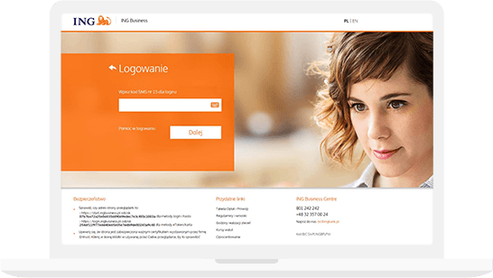 Będziesz logował się za pomocą urządzenia przypisanego do Ciebie (sparowanego) w ING Business (element posiadania), podając: