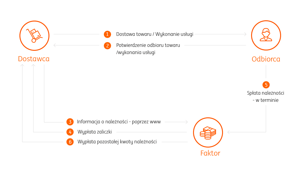 - Faktoring obsługowy - nie finansujemy przekazanych nam należności. Zapłatę za należność otrzymują Państwo po dokonaniu spłaty przez odbiorcę.