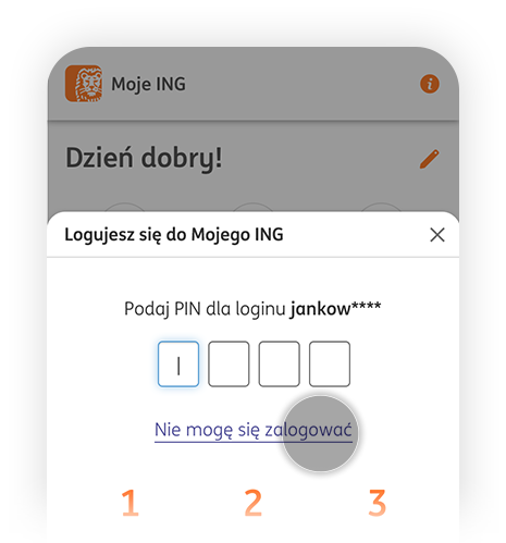 Aby ponownie skorzystać z Mojego ING, należy odblokować system. W tym celu naciśnij Odzyskaj dostęp w aplikacji mobilnej lub wypełnij wniosek na stronie internetowej.