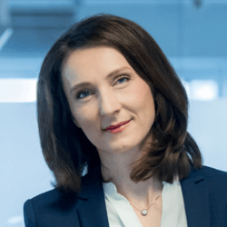 Od 25 lat związana z ING. Pracowała w różnych jednostkach banku, z półroczną przerwą na wolontariat w Ameryce Południowej. Zarządzała m.in. siecią hipoteczną oraz segmentem personal banking. Ma ogromne doświadczenie w pionierskich projektach – wprowadziła w ING (pierwszy w Polsce) standard obsługi klienta Best Service, zbudowała też od podstaw jednostkę odpowiedzialną za Customer Experience. Od 2014 roku w roli Chief Innovation Officera. Buduje w organizacji kulturę innowacji opartą o Design Thinking, Lean Startup i Agile. Wspiera szybkie wdrażanie innowacyjnych rozwiązań poprzez niskobudżetowe eksperymenty i testy. Konsekwentnie rozwija w organizacji nowe kompetencje, takie jak service design, data science, czy growth hacking. Od stycznia 2022 koordynuje działania z zakresu innowacji, ESG i zrównoważonego rozwoju.