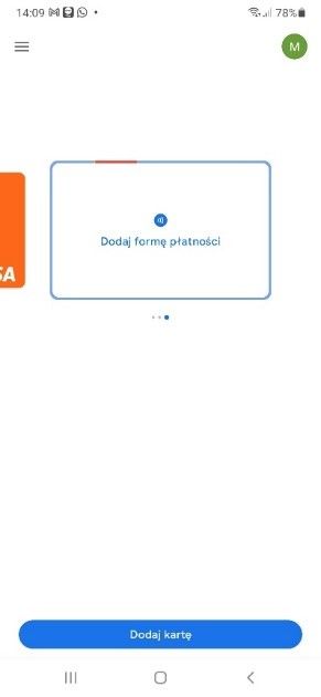 Після завантаження програми натисніть внизу екрана на синій прямокутник з текстом Dodaj kartę.