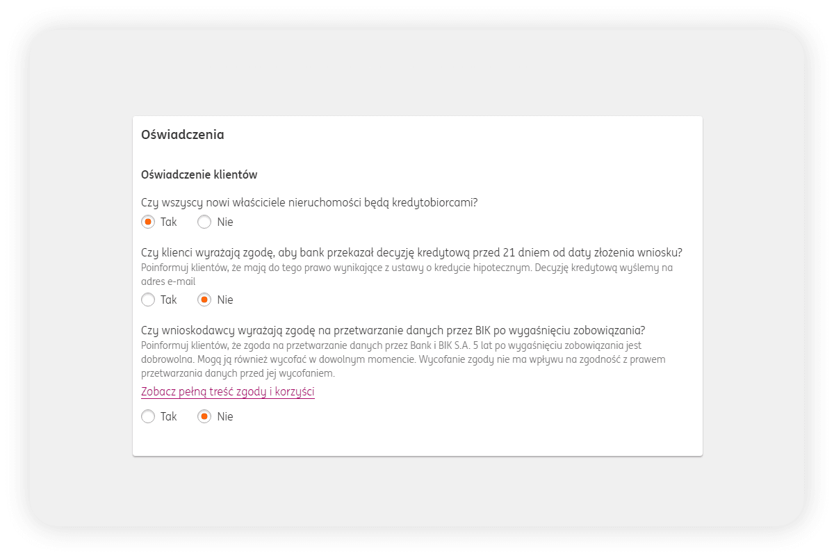 Ekran pojawi się tylko wtedy, gdy dla danego klienta oświadczenie jest wymagane.