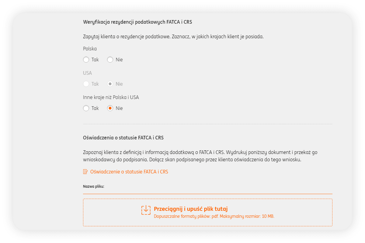 - pobierz i wypełnij z klientem Oświadczenie FATCA/CRS,