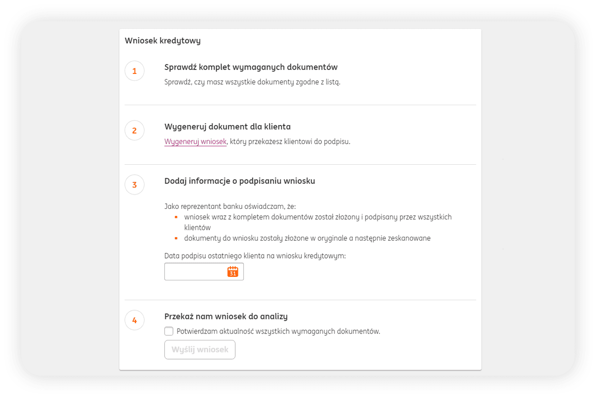 - Przekaż do podpisu wniosek kredytowy z najwyższym numerem porządkowym - najnowsza wersja.