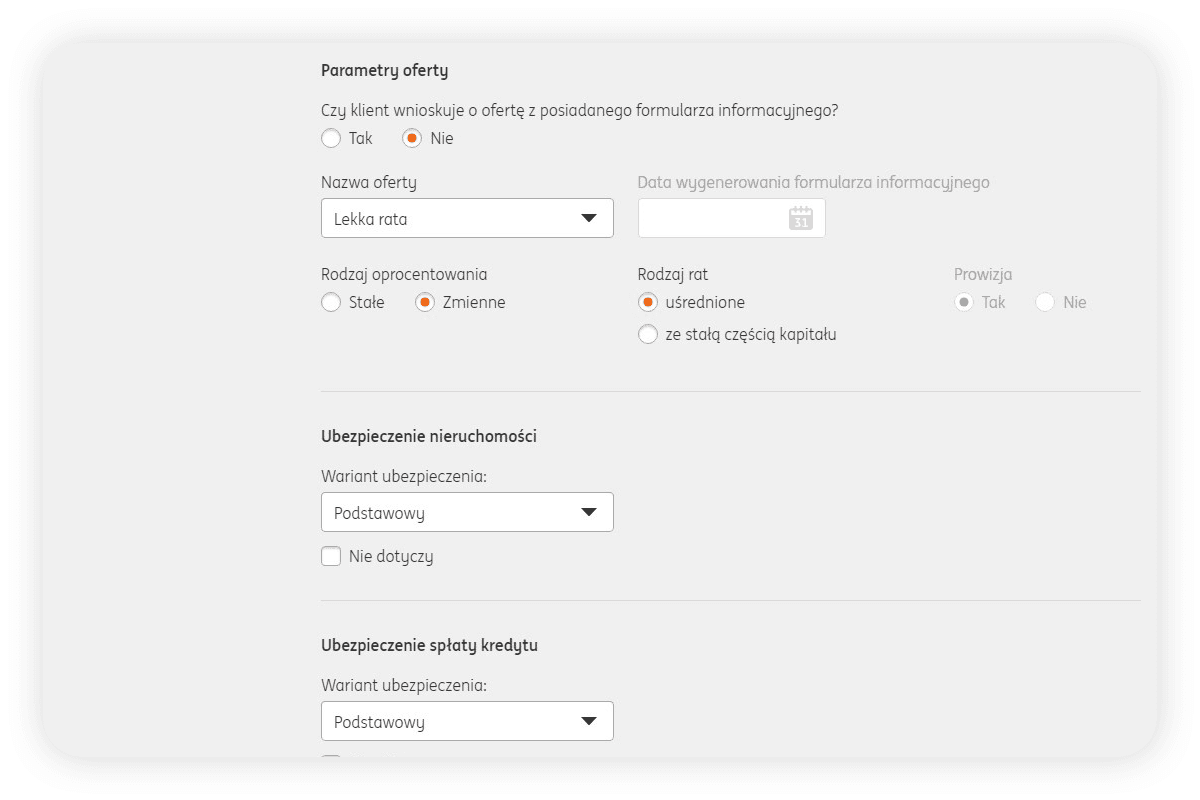 Wybierz produkt i dostosuj parametry oferty do potrzeb klienta