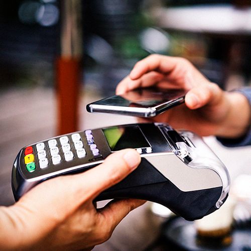 - Klient przykłada do terminala kartę, telefon lub smartwatch.